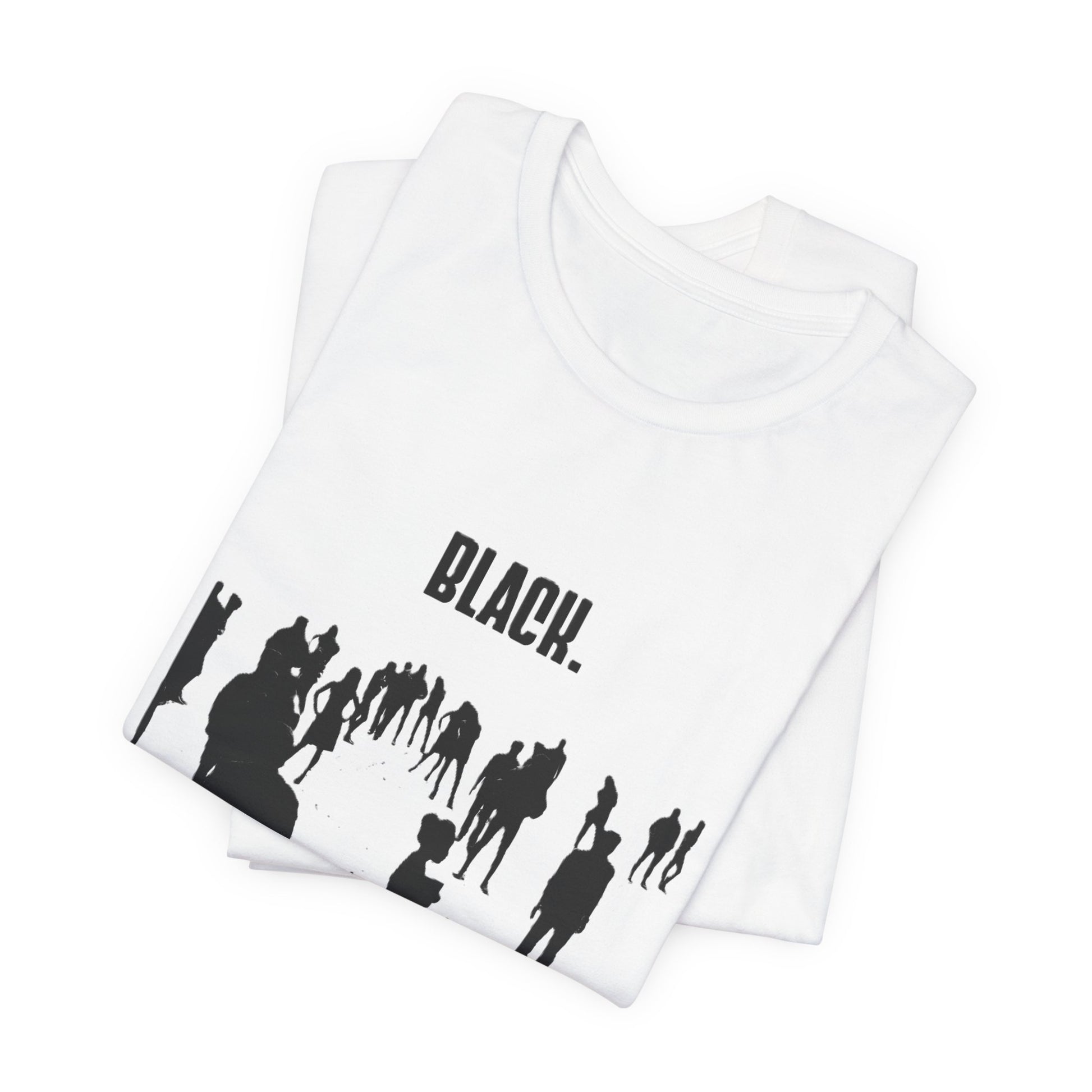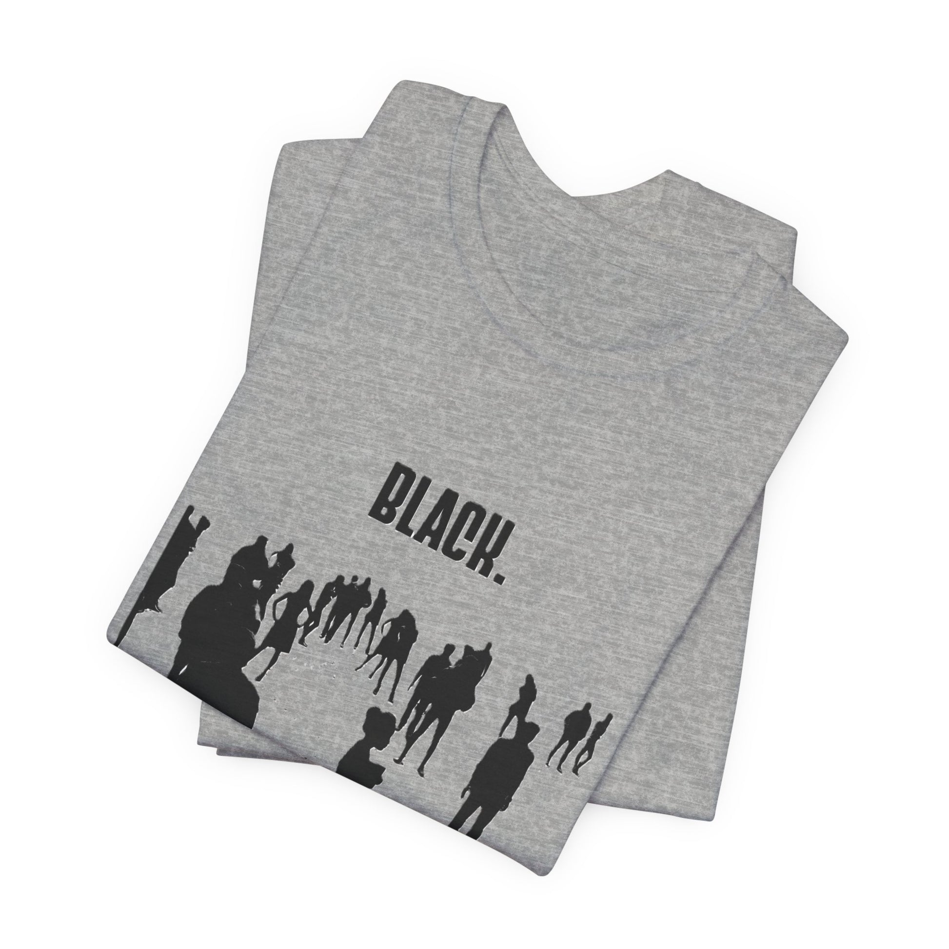 This lightweight, soft jersey tee carries a quiet but powerful message. A silhouette crowd moves forward beneath the bold headline “BLACK.”, with the words Creativity, Power, Excellence layered below in a subtle rainbow of tones. The slim retail fit and crew neckline keep the look clean and easy to wear—tucked into jeans, layered under a jacket, or worn solo while making a statement without shouting. Breathable Airlume combed cotton and a tear-away label keep it comfortable for long days of gatherings, rallies, studio sessions, or everyday life where pride and craft matter.
